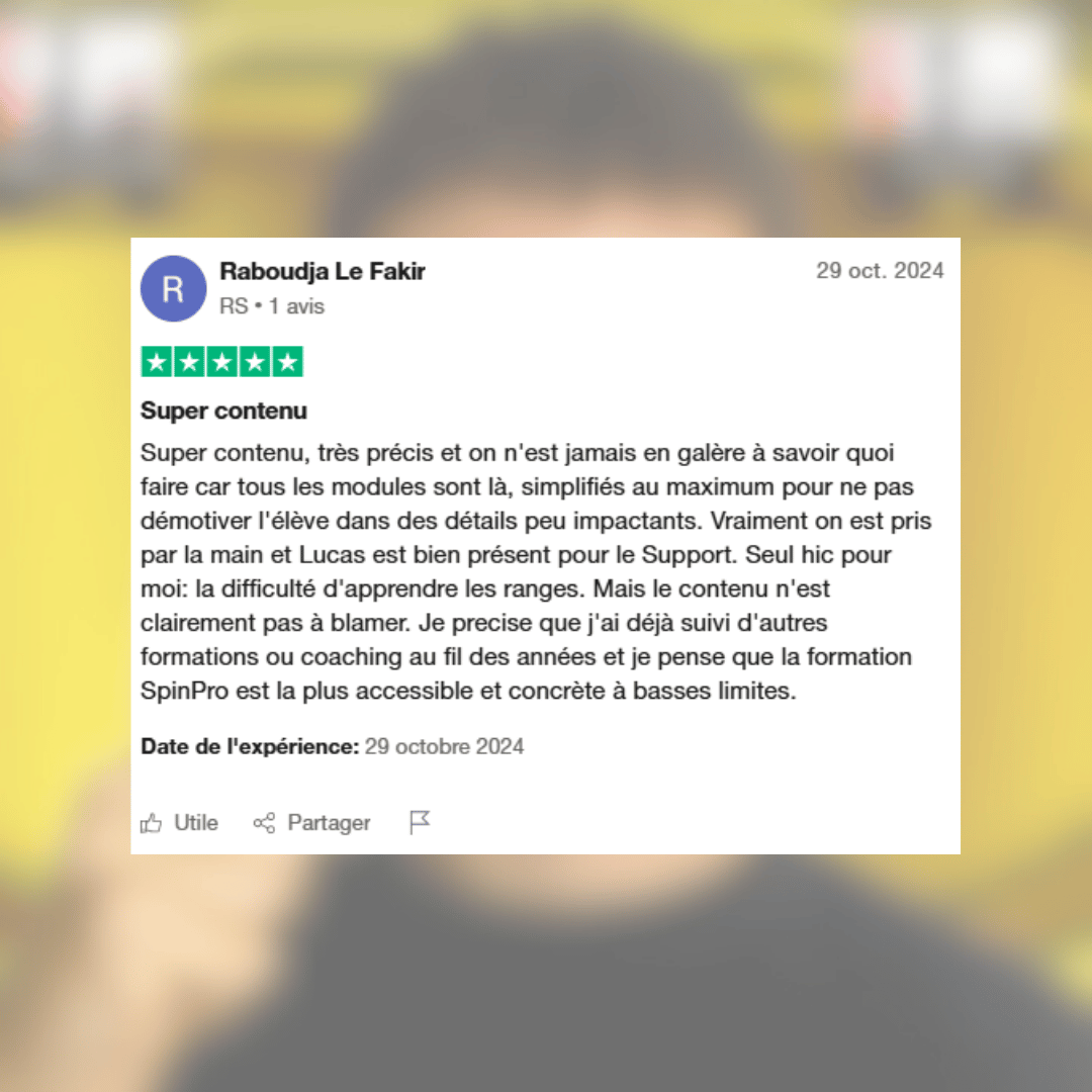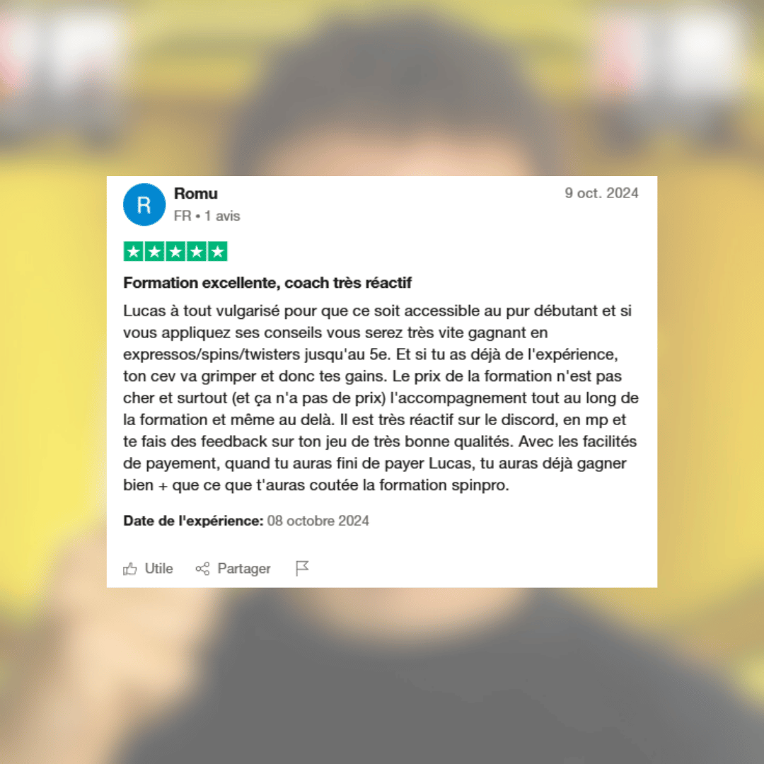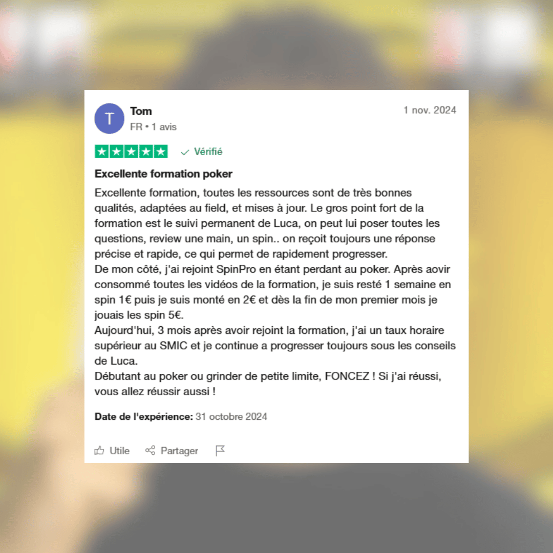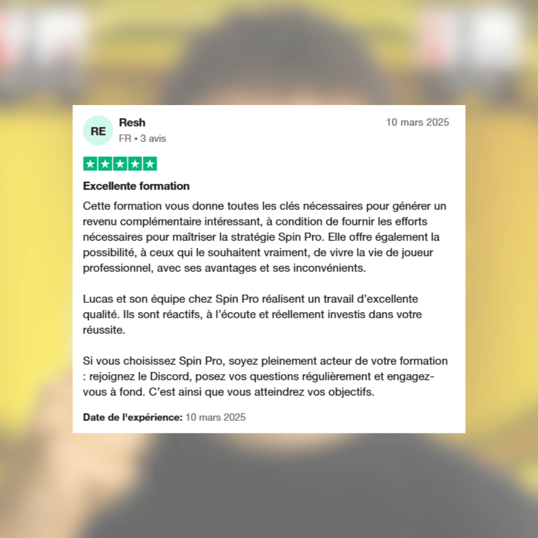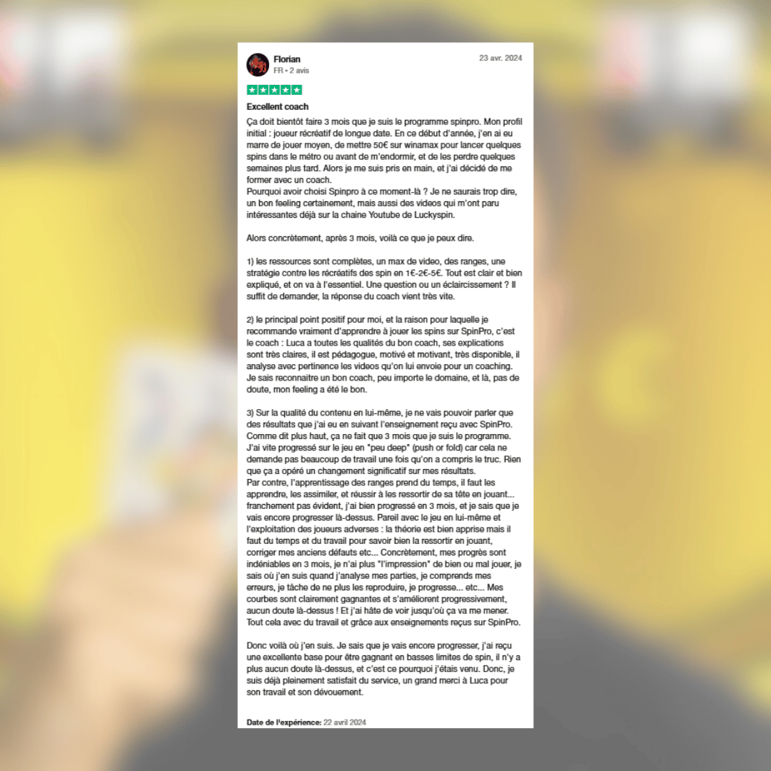 “Grâce à SpinPro, j'ai beaucoup structuré mon jeu et professionnalisé mon approche. [...] Quelqu'un qui suit la méthode va forcément y arriver.”