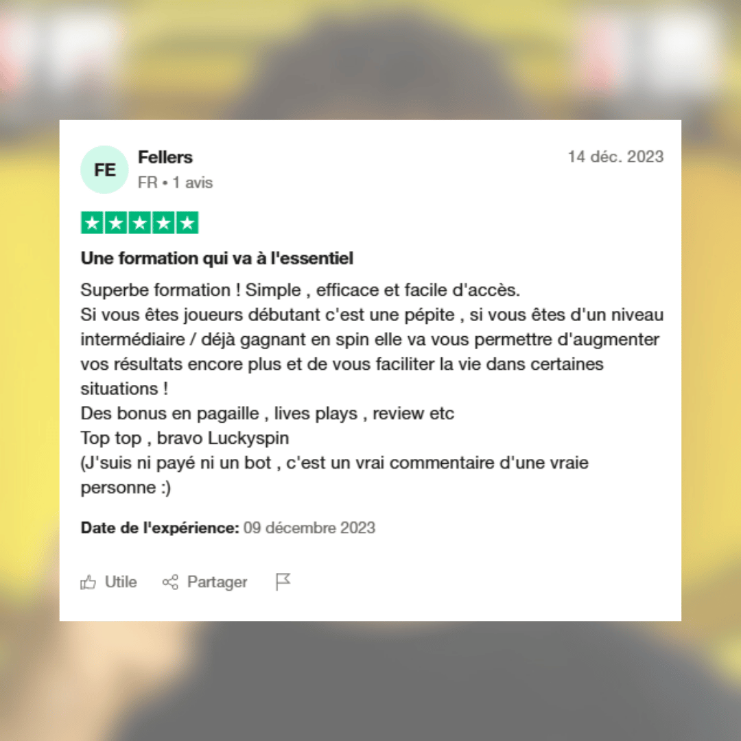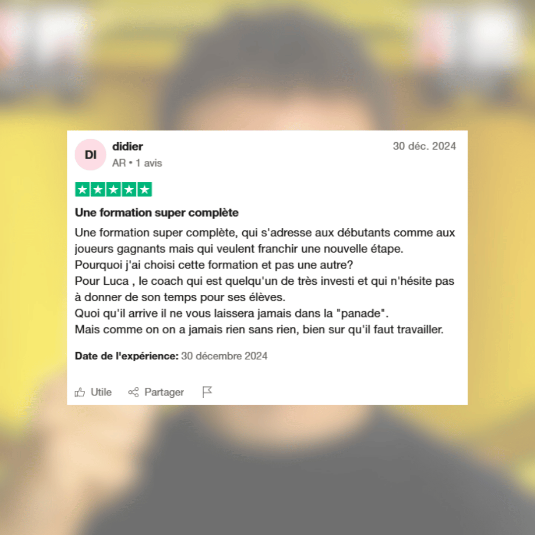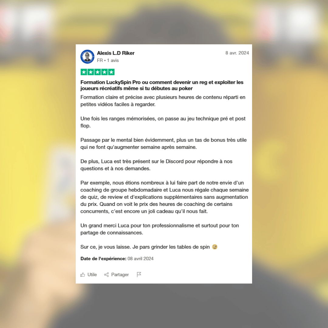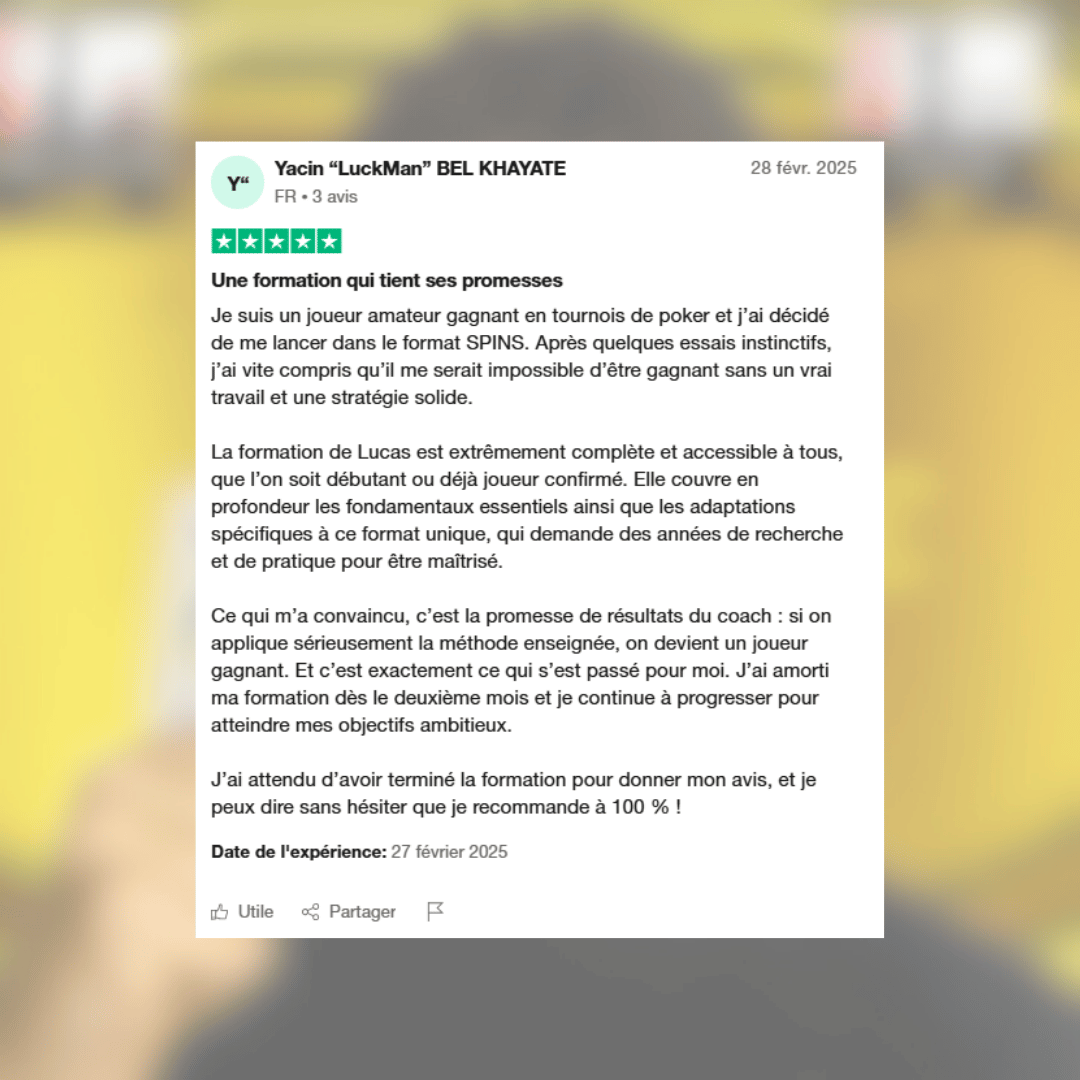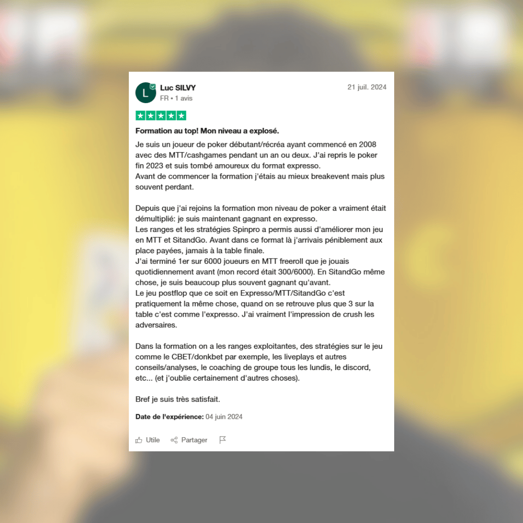 “Grâce à SpinPro, j'ai beaucoup structuré mon jeu et professionnalisé mon approche. [...] Quelqu'un qui suit la méthode va forcément y arriver.”