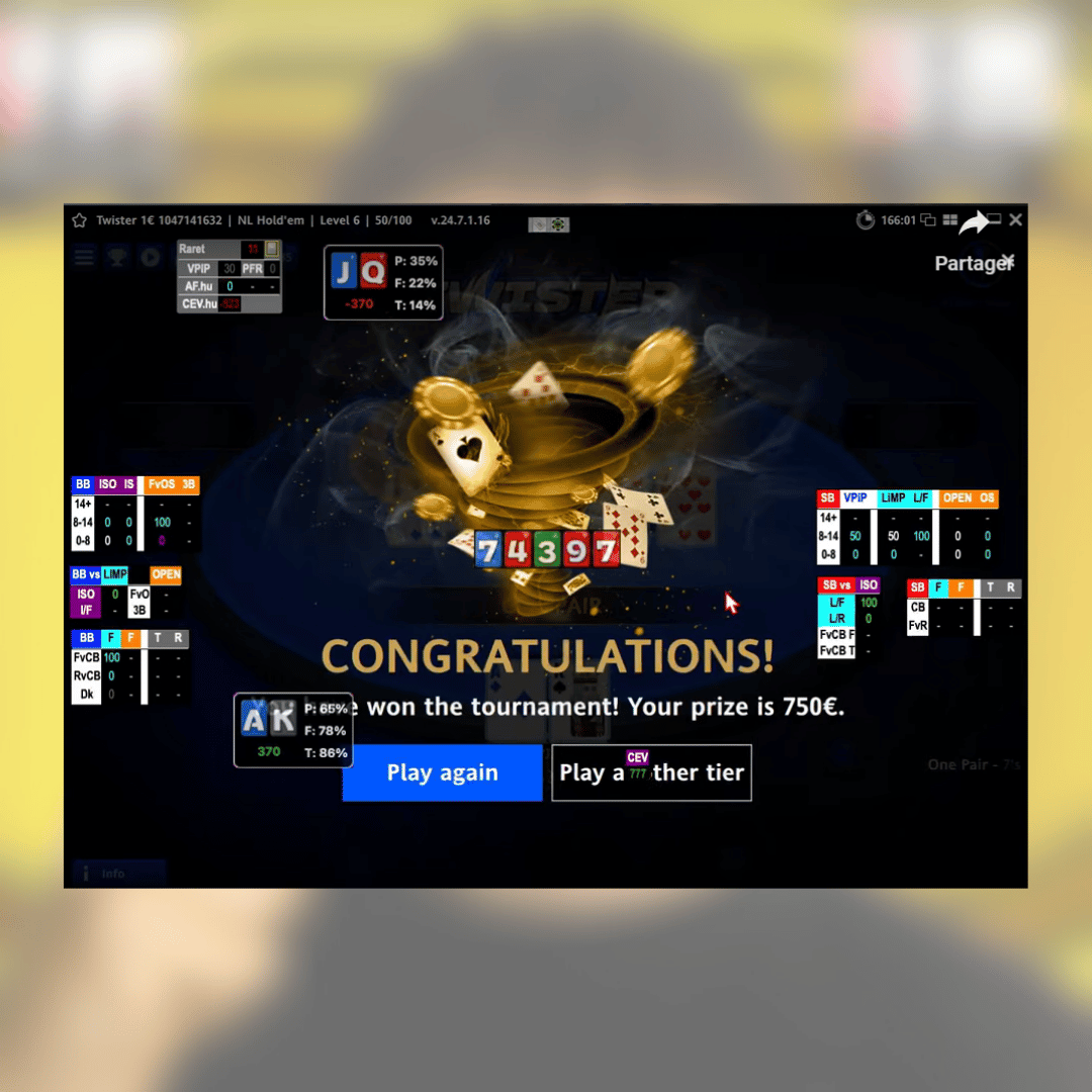 Après plus de 4 ans en tant que joueur professionnel, plus de 350 élèves accompagnés, et plus de 150.000€ remportés sur les tables, j'ai décidé de vous transmettre le plus simplement possible toutes mes connaissances via SpinPro.